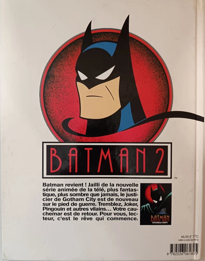 Batman revient ! Jailli de la nouvelle série animée de la télé, plus fantastique, plus sombre que jamais, le justicier de Gotham City est de nouveau sur le pied de guerre. Tremblez, Joker, Pingouin et autres vilains... Votre cauchemar est de retour. Pour vous, lecteur, c'est le rêve qui commence.