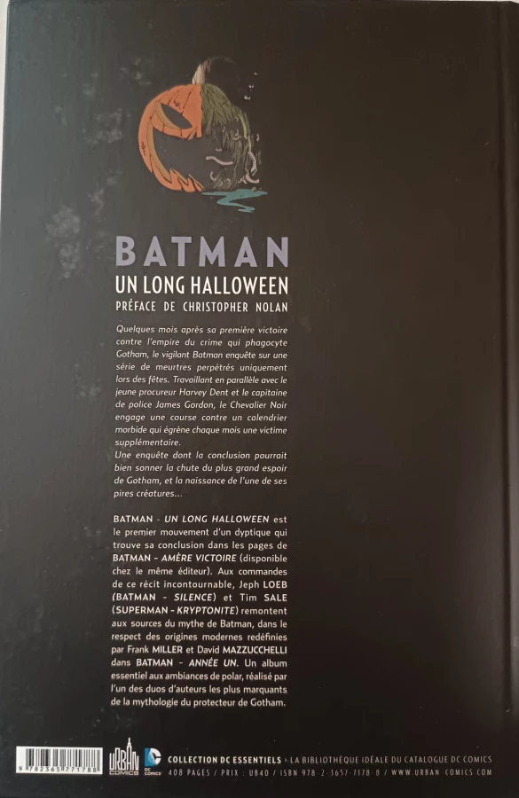 Quelques mois après sa première victoire contre l'empire du crime qui phagocyte. La cité de Gotham, le vigilant Batman enquête sur une série de meurtres perpétrés uniquement lors des fêtes. Travaillant en parallèle avec le jeune procureur Harvey Dent et le Lieutenant James Gordons, le Chevalier Noir engage une course contre ce calendrier morbide qui égrène chaque mois une victime supplémentaire. Une quête dont la conclusion pourrait bien sonner la chute du plus grand espoir de Gotham, et la naissance de l'un de ses pires monstres de foire...