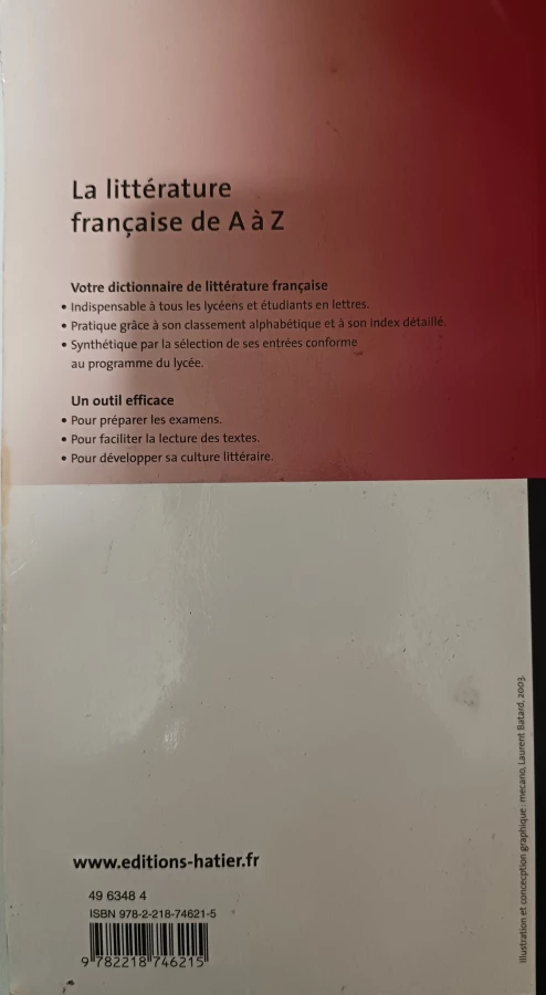 Votre dictionnaire de littérature française indispensable à tous les lycéens et étudiants en lettres, pratique grâce à son classement alphabétique et à son index détaillé, synthétique par la sélection de ses entrées conforme au programme du lycée.