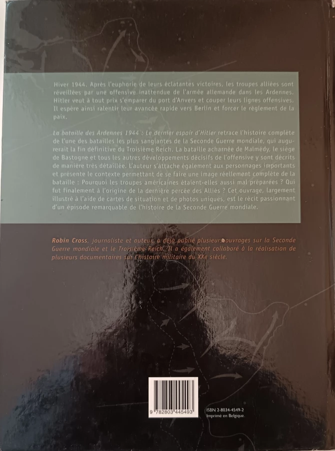 Hiver 1944. Après l'euphorie de leurs éclatantes victoires, les troupes alliées sont réveillées par une offensive inattendue de l'armée allemande dans les Ardennes. Hitler veut à tout prix s'emparer du port d'Anvers et couper leurs lignes offensives. Il espère ainsi ralentir leur avancée rapide vers Bertin et forcer le règlement de la paix. La bataille des Ardennes 1944 : Le dernier espoir d'Hitler retrace l'histoire complète de l'une des batailles les plus sanglantes de la Seconde Guerre mondiale, qui augurerait la fin définitive du Troisième Reich. La bataille acharnée de Malmédy, le siège de Bastogne et tous les autres développements décisifs de l'offensive y sont décrits de manière très détaillée. L'auteur s'attache également aux personnages importants et présente le contexte permettant de se faire une image réellement complète de la bataille : Pourquoi les troupes américaines étaient-elles aussi mal préparées ? Qui fut finalement à l'origine de la dernière percée des Alliés ? Cet ouvrage, largement illustré à l'aide de cartes de situation et de photos uniques, est le récit passionnant d'un épisode remarquable de l'histoire de la Seconde Guerre mondiale.