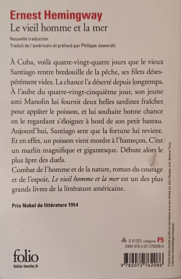 À Cuba, voilà quatre-vingt-quatre jours que le vieux Santiago rentre bredouille de la pêche, ses filets désespérément vides. La chance l'a déserté depuis longtemps. À l'aube du quatre-vingt-cinquième jour, son jeune ami Manolin lui fournit deux belles sardines fraîches pour appâter le poisson, et lui souhaite bonne chance en le regardant s'éloigner à bord de son petit bateau. Aujourd'hui, Santiago sent que la fortune lui revient. Et en effet, un poisson vient mordre à l'hameçon. C'est un marlin magnifique et gigantesque. Débute alors le plus âpre des duels. Combat de l'homme et de la nature, roman du courage et de l'espoir, Le vieil homme et la mer est un des plus grands livres de la littérature américaine.